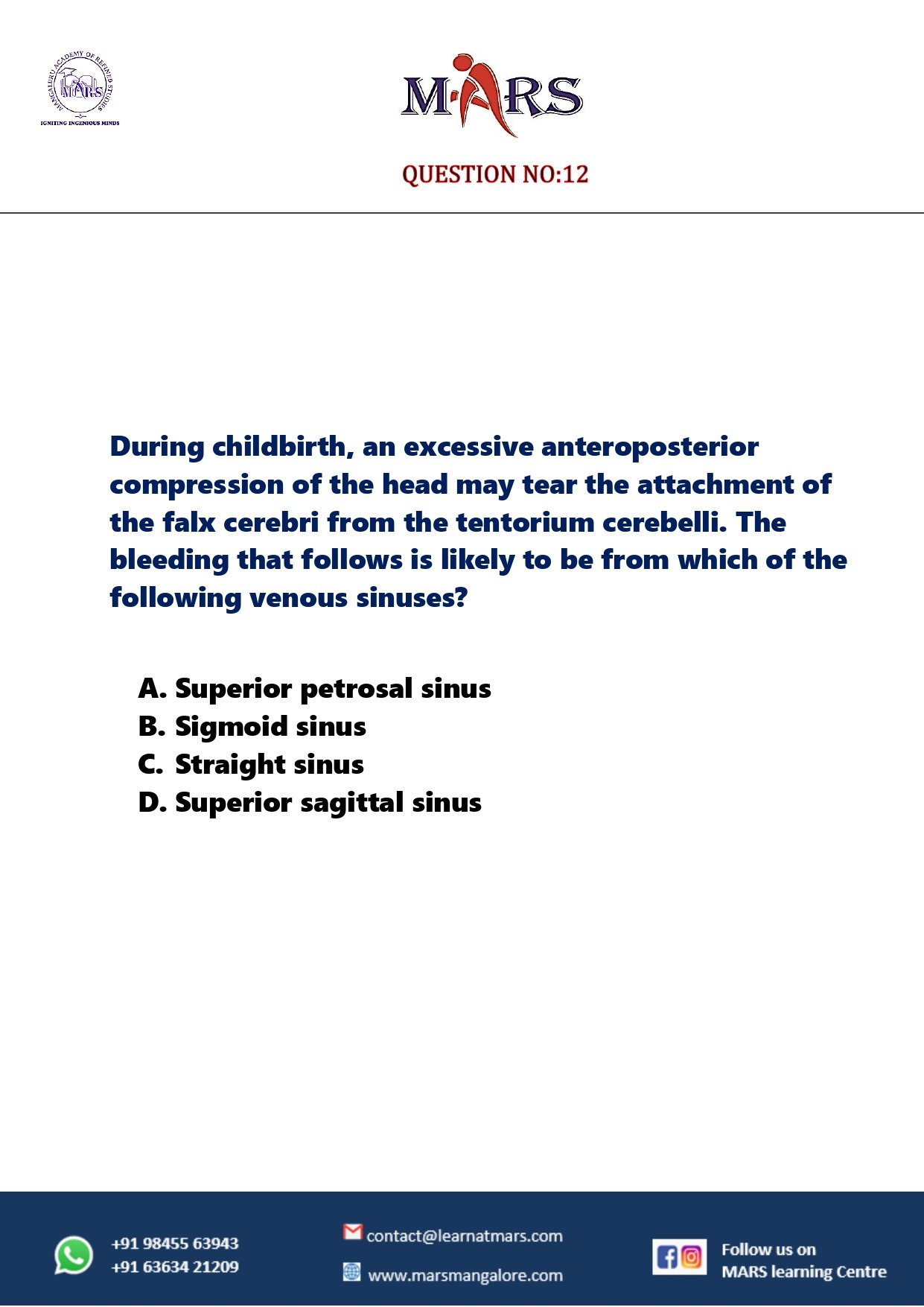 CRANIAL CAVITY QUESTION NO - 12