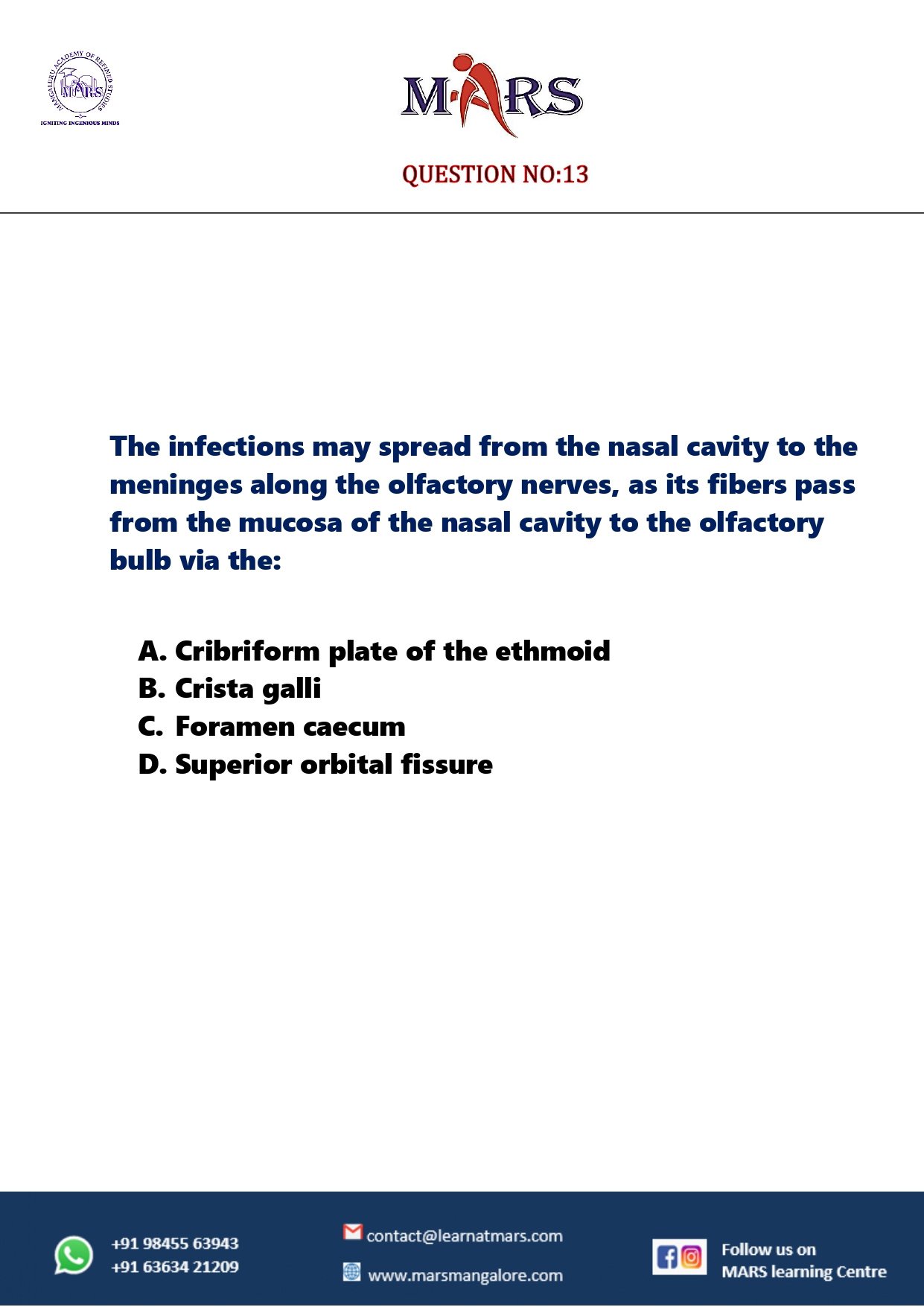 CRANIAL CAVITY QUESTION NO - 13
